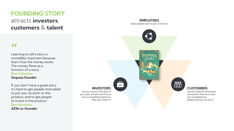 For Investors: A strong story connects your past, present, and future, creating a compelling trajectory for investment.